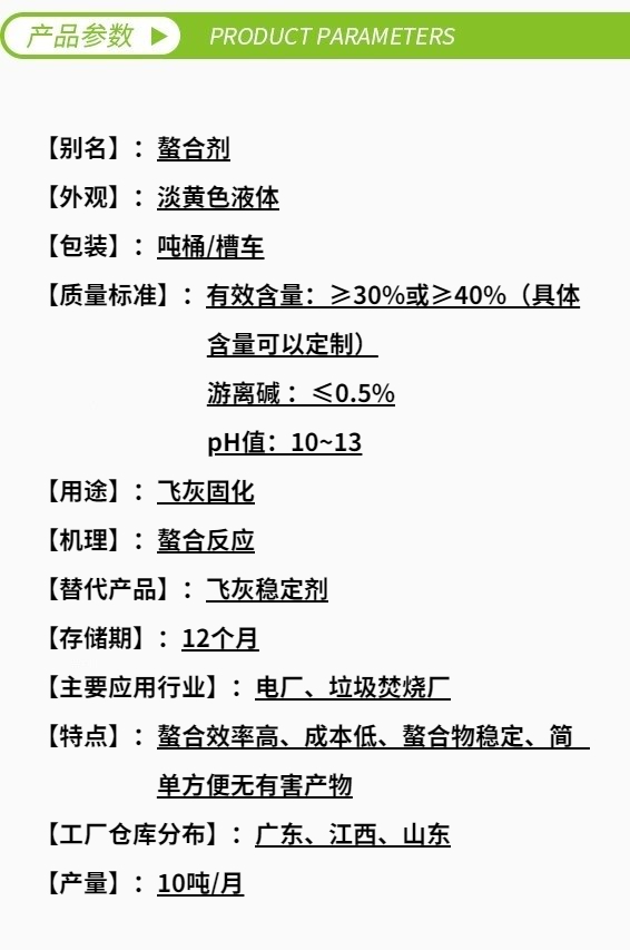 飛灰螯合劑產(chǎn)品特點